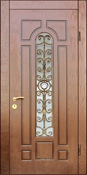 Красивый внешний вид немаловажное, но не самое главное преимущество металлических дверей с элементами ковки. Такие двери еще и очень надежны. Они изготавливаются из холоднокатаной стали толщиной 1,4-2 мм, отделываются массивом, корабельной фанерой, натуральным шпоном или МДФ-панелями, покрытыми виноритом. Установив на нее замки 3 или 4 класса взломостойкости, вы получите дверь, вскрыть которую с помощью грубой силы практически невозможно.