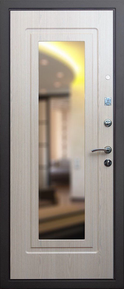 Прочная металлическая Дверь с зеркалом DZ385 по цене от 25 000 руб. под заказ в любой комплектации. Вы можете выбрать материал, замки, цилиндры и многое другое. Производим сами! Быстрая доставка и установка в Ростове-на-Дону.