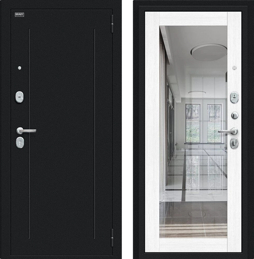 Надежная входная Дверь Браво Флэш Букле черное/Snow Melinga премиум класса по цене 32 649 руб. Большая толщина стали защитит от проникновения в ваш дом, квартиру или коттедж. Используется очень качественная фурнитура: замки, цилиндры, ручки, защелки. Покрытие и отделка двери изготовлено под внимательным контролем производителя. Дверь имеет долгий срок службы и гарантию.